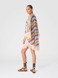 A garment that interprets Missoni's iconic style with lightness. This short women's raschel kaftan stands out for its shaded striped print, which creates a play of movement and depth. The wide, airy line is embellished with fringes at the bottom of the dress, a detail that adds dynamism and lightness. MORE DETAILS - Women's short caftan - Fringe applique - Raschel knit - Faded striped print Composition: EXTERNAL:100%Polyester; TRIMMING:100%Acetate Care instructions: Ironing maximum temperature 110°C - without steam ; Dry cleaning in tetrachloroethene ; Do not tumble dry ; Iron with a cloth between ; Do not wash ; Do not bleach Made in: Italy Product ID MC25WQ04BR013XSM9UC