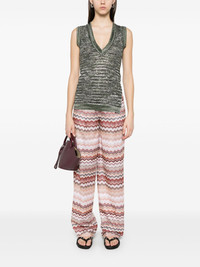 zigzag-pattern lame trousers Highlights - Red - Concealed fly and button fastening - Two side slit pockets - Rear welt pocket - The item you receive may differ slightly from the item photographed. this is due to the artisanal nature with which all missoni products are constructed. Made in Italy Composition Outer: Viscose 79%, Metallic Fibre 11%, Polyamide 10% Lining: Polyester 100% SIZE & FIT Model measurements Height 5 ft 10 in(1.78 m) Bust/Chest 33.85 in(86 cm) Hips 36.61 in(93 cm) Waist 26.77 in(68 cm) FittingInformation Designed for a straight-leg fit, these trousers allow for a close fit at the waist and an unrestricted, comfortable fit over the leg Made from a midweight non-stretch fabric Washing instructions Hand Wash