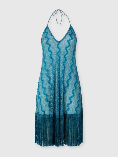 Cover-up dress in zig zag lamé viscose with fringes
