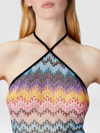 Timeless style defines this short cover-up in printed lace and Raschel craftsmanship. The halter neck with tie at the back highlights a refined, contemporary femininity. MORE DETAILS - Women's short cover-up - Halter neckline - Open back design - Printed lace workmanship Composition: EXTERNAL:100%Polyester Care instructions: Ironing maximum temperature 110°C - without steam ; Dry cleaning in tetrachloroethene ; Do not tumble dry ; Do not wash ; Do not bleach Made in: Italy Product ID MS25SQ1WBR012WS507I