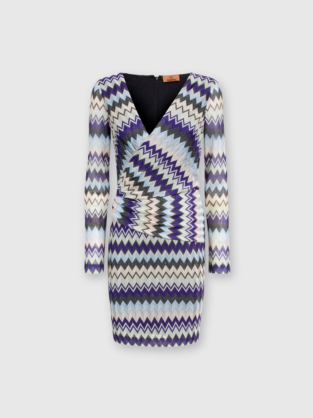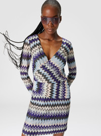 The V-neckline with a panel that drapes over the hip characterizes the short long-sleeved dress. Crafted in viscose with a raschel finish, it is enlivened by the zigzag lame motif. MORE DETAILS - Short dress - Draped V-neckline - Raschel Processing - Zigzag lame pattern Composition: EXTERNAL:98%Rayon, 2%Metal Fiber; LINING : 100%Polyester Care instructions: Ironing maximum temperature 110°C - without steam ; Dry cleaning in tetrachloroethene - mild process ; Hand wash ; Do not tumble dry ; Cool hand wash ; Dry flat ; Do not bleach ; Do not professionally wet clean Made in: Italy Product ID DS24WG17BR00YGSM9FK