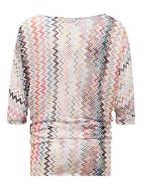 zigzag-pattern three-quarter-sleeve top Highlights - White - Zigzag pattern - Three-quarter sleeves - Boat neck - Gathered hem - The item you receive may differ slightly from the item photographed. this is due to the artisanal nature with which all missoni products are constructed. Imported Composition Fabric 100% Washing instructions Read Manufacturer Guidelines