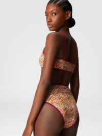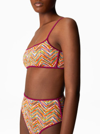 Bikini with iconic zigzag pattern. The reversible design makes it easy to change the look, while the high-waisted top and briefs provide a comfortable and versatile fit, enhancing the silhouette with a touch of retro elegance. MORE DETAILS - Reversible bikini - Zigzag pattern - High-waisted briefs Composition: EXTERNAL:86%Polyester, 14%Elastane; LINING : 80%Polyamide, 20%Elastane Care instructions: Hand wash ; Do not tumble dry ; Do not dry clean ; Do not iron ; Do not bleach Made in: Italy Product ID MS25SP03BJ00LHSM9MZ