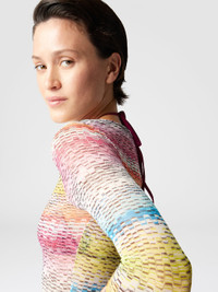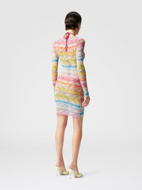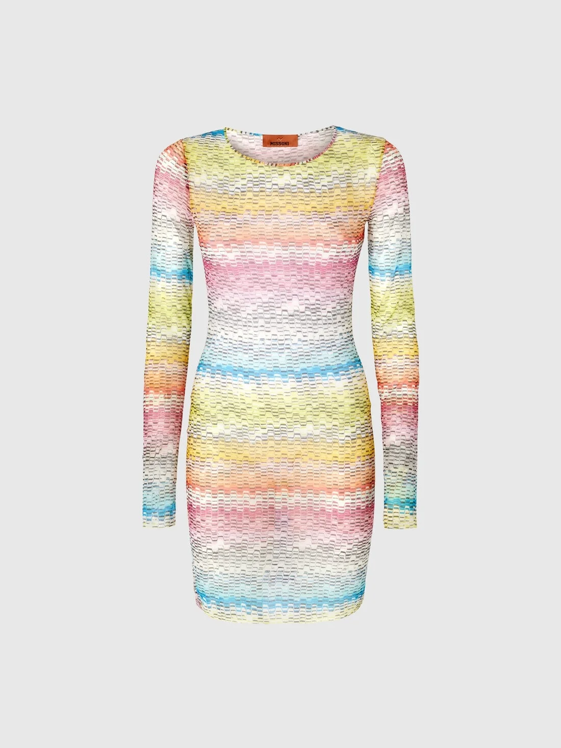 Long-sleeved cover-up dress in tulle printed with multicolor chevron that embodies the vibrant and sophisticated essence of Missoni's DNA. The long sleeves give the dress a sophisticated appeal, making it a versatile choice for the summer look. MORE DETAILS - Long Sleeve Dress - Tulle Printed - Zigzag pattern Composition: EXTERNAL:93%Polyamide, 7%Elastane Care instructions: Ironing maximum temperature 110°C - without steam ; Dry cleaning in tetrachloroethene ; Do not tumble dry ; Do not wash ; Do not bleach Made in: Italy Product ID MC22SL00BJ00NASM9N2