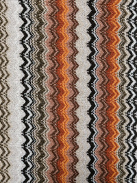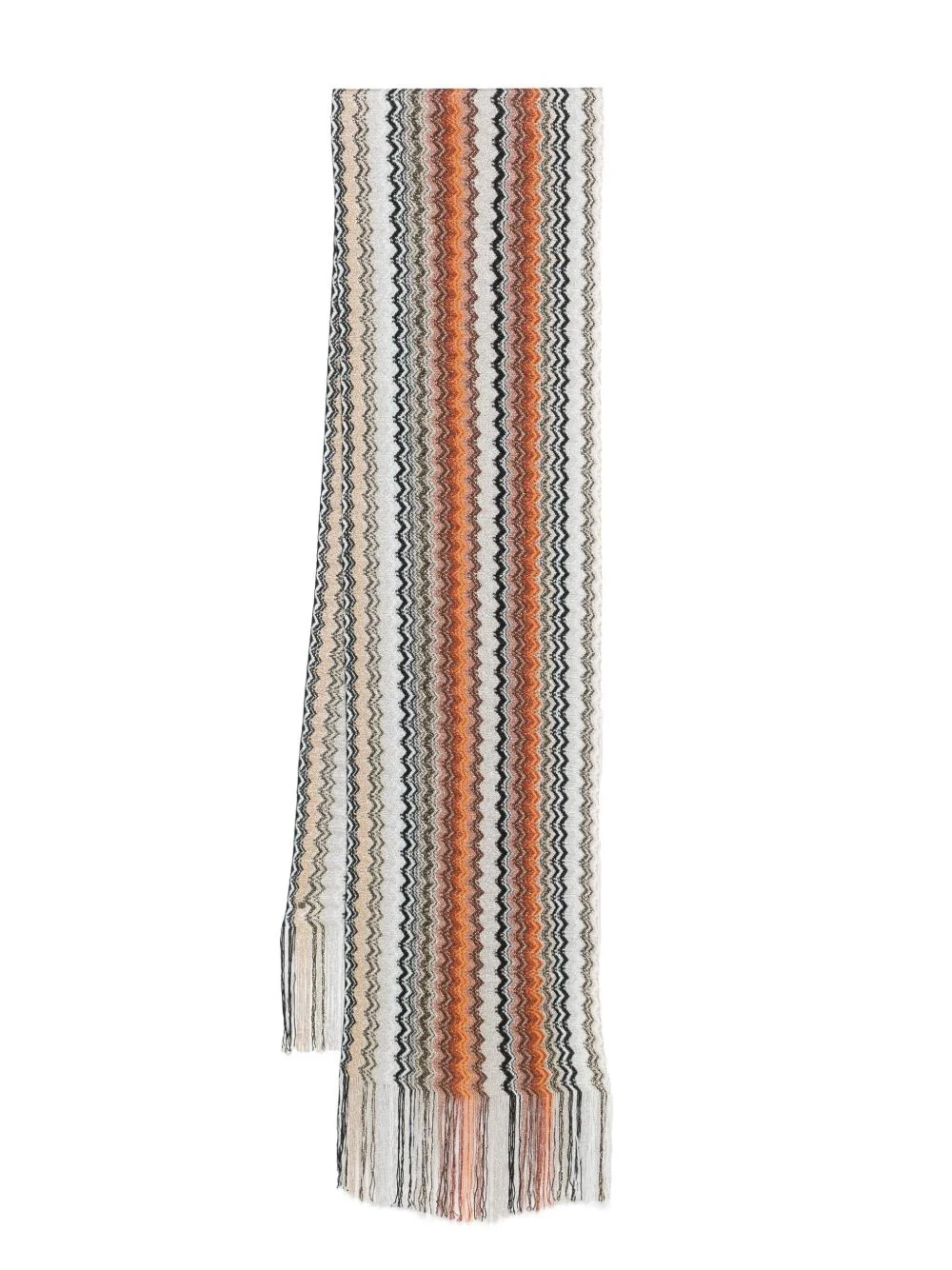zigzag scarf Highlights - Camel brown - Fringed edge - Lame effect - The item you receive may differ slightly from the item photographed. this is due to the artisanal nature with which all missoni products are constructed. Made in Italy Composition Viscose 66%, Polyester 34% SIZE & FIT Measurement LENGTH 78.74 in(200 cm) WIDTH 17.71 in(45 cm)