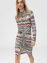 A must-have shirtdress for the modern wardrobe that balances elegance and practicality. The waist belt sculpts the silhouette, while the 100% viscose raschel snake motif adds a modern, sophisticated texture—Missoni’s contemporary twist on a timeless classic. MORE DETAILS - Shirt dress - Front buttons and waist belt - Raschel knit - Snake motif - 100% viscose Composition: EXTERNAL:100%Rayon Care instructions: Dry cleaning in tetrachloroethene - mild process ; Ironing maximum temperature 110°C - without steam ; Do not tumble dry ; Dry flat ; Do not wash ; Do not bleach Made in: Italy Product ID DS25WG09BR012GSM9QW
