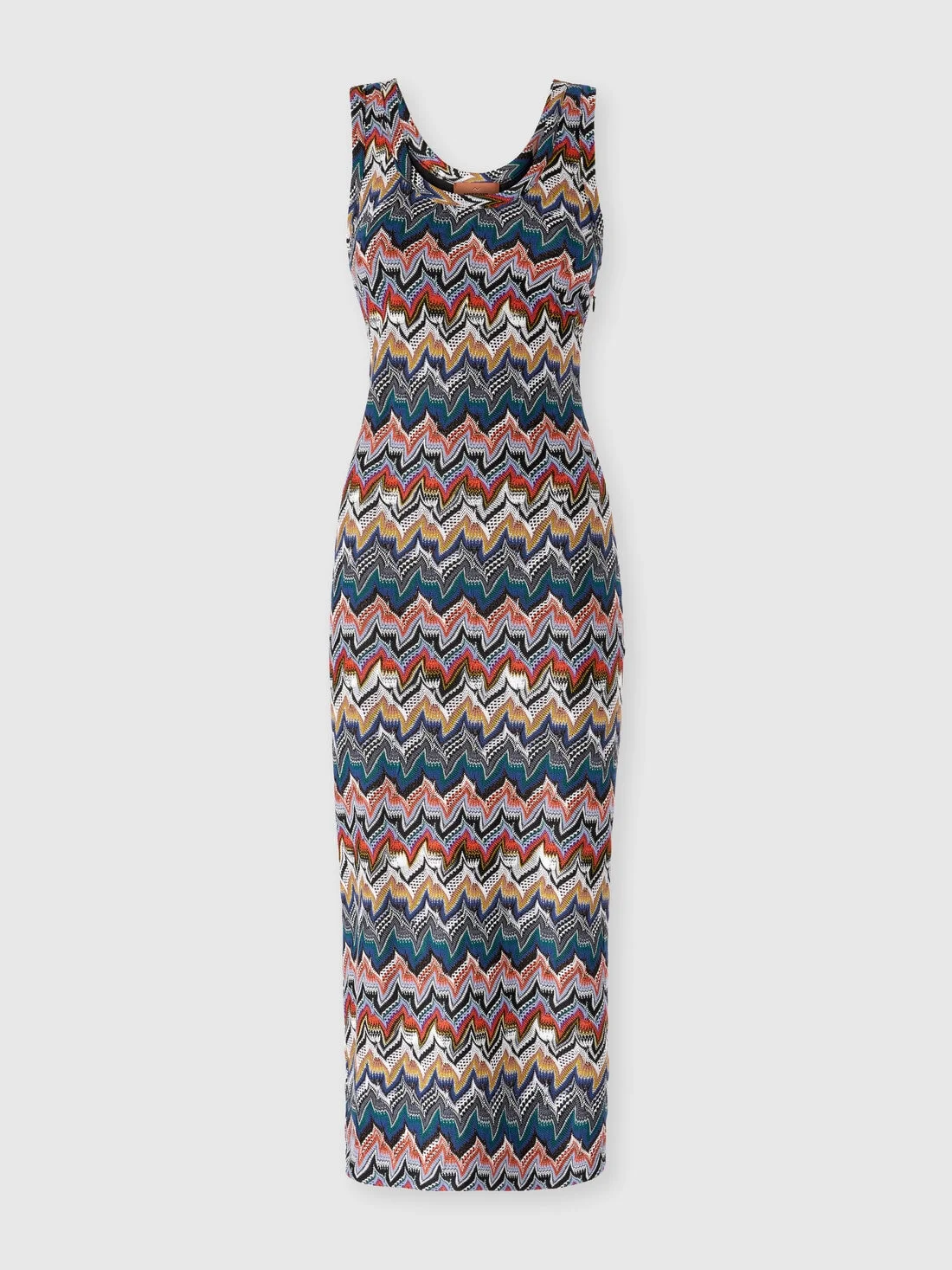 This long women's tank dress in viscose and wool blend with lame filaments stands out for its large floral lace raschel work. The round neckline and long silhouette create a balance between lightness and style, resulting in an elegant and refined garment with Missoni's distinctive signature. MORE DETAILS - Long women's dress - Large floral lace raschel fabric - Round neckline - Viscose and wool blend with lame filaments Composition: EXTERNAL:66%Rayon, 30%Wool, 4%Metal Fiber; INTERNAL REINFORCEMENT:100%Polyester Care instructions: Ironing maximum temperature 110°C - without steam ; Dry cleaning in tetrachloroethene - mild process ; Dry flat ; Do not tumble dry ; Do not wash ; Do not bleach Made in: Italy Product ID DS25WG2QBR012FSM9R3