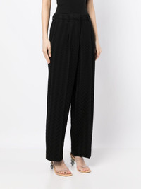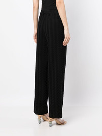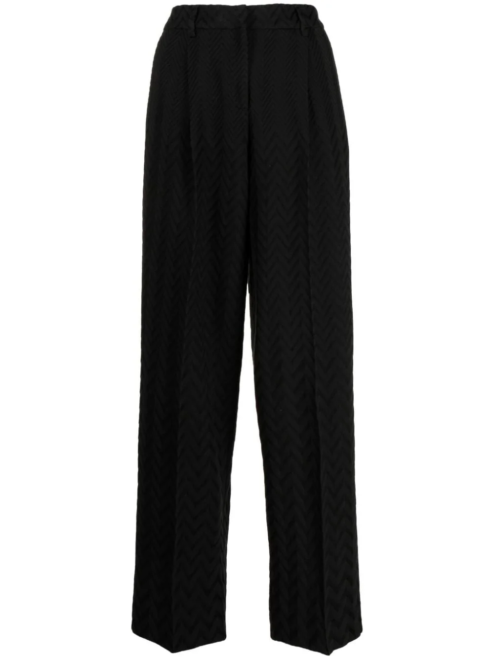 zigzag tailored trousers Missoni is an Italian luxury fashion house known for using bold prints and details in every creation. These wide-leg trousers are crafted com a cotton blend and enhanced with a zigzag pattern all over. Highlights - Black - Cotton blend - Signature zigzag woven design - Pressed crease - High-waisted - Belt loops - Concealed front fastening - Two side inset pockets - Two rear welt pockets - Rear welt pocket - The item you receive may differ slightly from the item photographed. this is due to the artisanal nature with which all missoni products are constructed. Made in Italy Composition Cotton 74%, Viscose 26% SIZE & FIT Model measurements Height 5 ft 10 in(1.78 m) Bust/Chest 33.07 in(84 cm) Hips 33.85 in(86 cm) Waist 25.19 in(64 cm) FittingInformation This piece fits true to size. We recommend you get your regular size Designed to be fitted at the waist, loose over the leg Made with a mid-weight non-stretch fabric Washing instructions Dry Clean Only