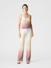 A garment that embodies Missoni's timeless sophistication, these straight jacquard trousers feature the classic degrade chevron pattern. The linear design and perfect proportions are intertwined with the richness of the colors, creating a balance between elegance and comfort. MORE DETAILS - Oversized Pattern Sweater - Jacquard workmanship - Cotton & Viscose Mix - Degrade chevron pattern - V-neck Composition: EXTERNAL:62%Cotton, 38%Rayon Care instructions: Dry cleaning in tetrachloroethene - mild process ; Ironing maximum temperature 110°C - without steam ; Do not tumble dry ; Iron inside out ; Dry inside out ; Dry flat ; Do not wash ; Do not bleach Made in: Italy Product ID DS25SI06BK044VSM9M9