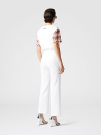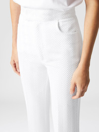 These classic trousers, with their sophisticated raschel workmanship, enhance the essence of the fluid movement typical of the maison. The cropped hem adds a touch of contemporary freshness, while the cotton-viscose blend fabric moves gracefully. A garment that combines tradition and innovation in a perfect synthesis of comfort and style. MORE DETAILS - Single-breasted blazer - Boxy silhouette - Viscose and cotton processing - Tonal zigzag pattern Composition: EXTERNAL:74%Cotton, 26%Rayon; INTERNAL REINFORCEMENT:100%Polyester Care instructions: Dry cleaning in tetrachloroethene - mild process ; Hand wash ; Steam iron only ; COOL HAND WASH ; Dry flat ; Do not tumble dry ; Do not iron ; Do not bleach Made in: Italy Product ID DS25SI01BR00JC10601