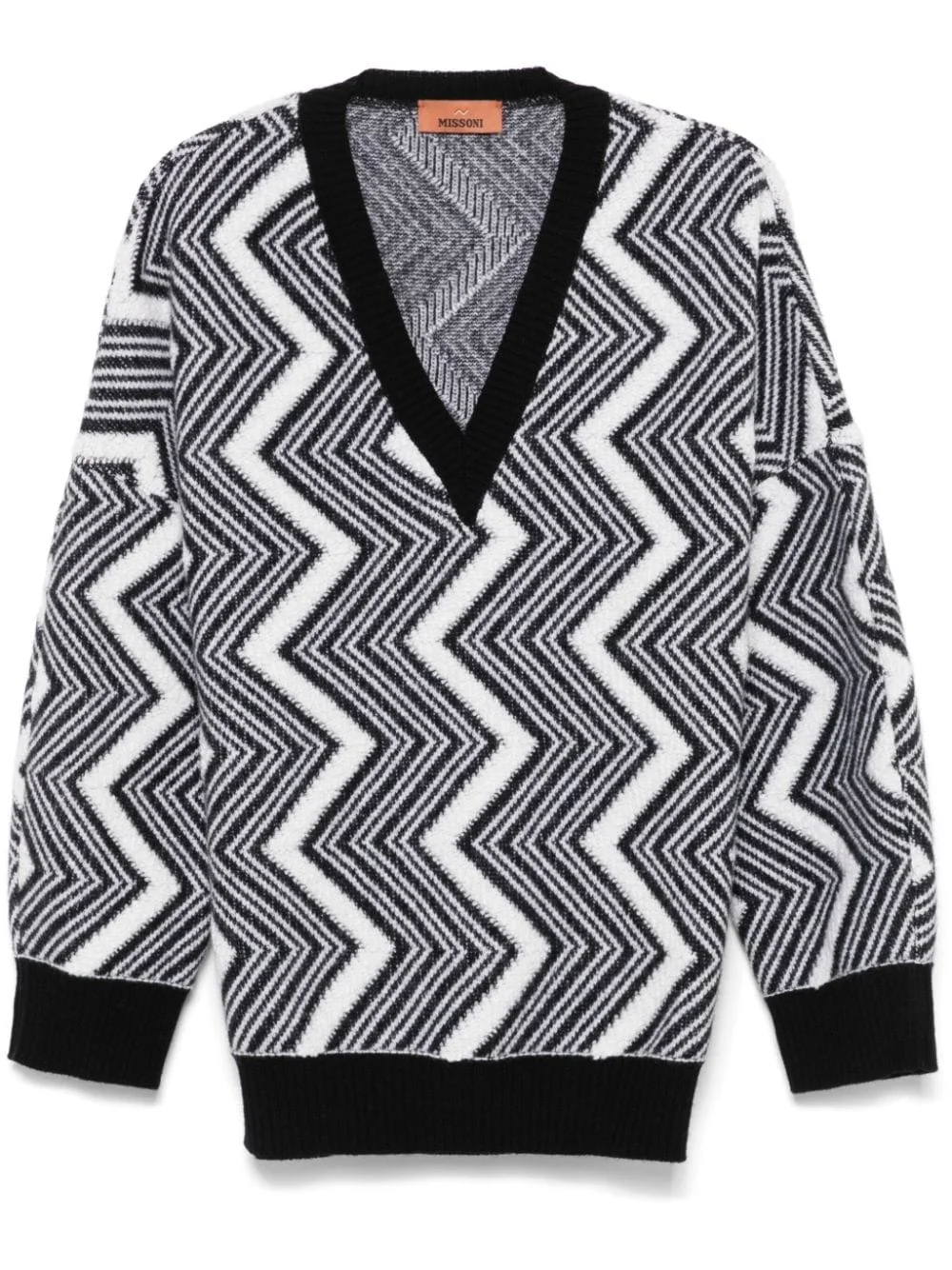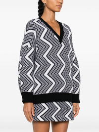 zigzag wool sweater Highlights - White/black - Wool - Boucle construction - Signature zigzag woven design - Ribbed v-neck - Drop shoulder - Long sleeves - Ribbed cuffs and hem - Straight hem - The item you receive may differ slightly from the item photographed. this is due to the artisanal nature with which all missoni products are constructed. Made in Italy Composition Wool 100% SIZE & FIT Model measurements Height 5 ft 10 in(1.78 m) Bust/Chest 33.07 in(84 cm) Hips 36.61 in(93 cm) Waist 24.8 in(63 cm) FittingInformation Designed for an oversized fit, offering additional room throughout The ribbed hem offers a close, comfortable fit Made with a midweight knit, this piece offers some stretch