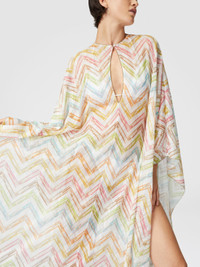 The long covered up caftan in printed tulle stands out for its raschel workmanship, which gives the fabric a light and precious texture. The wide batwing sleeves give the garment a fluid and dynamic elegance, making it ideal for completing the summer look with style even off the beach. A versatile garment, perfect for those looking for refinement and practicality, enhanced by the refined imagination. MORE DETAILS - Long cover-up kaftan - Tulle Printed - Batwing Sleeves - Zig zag pattern - Raschel processing Composition: EXTERNAL:100%Polyester Care instructions: Ironing maximum temperature 110°C - without steam ; Dry cleaning in tetrachloroethene ; Do not tumble dry ; Do not wash ; Do not bleach Made in: Italy Product ID MS25SQ0ABR010XSM9N4