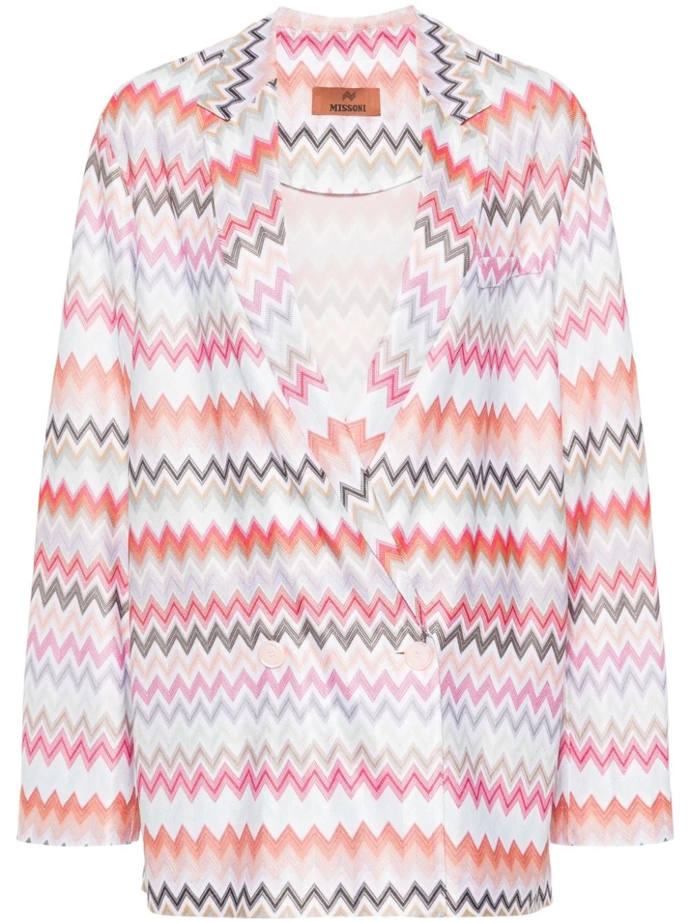 zigzag-woven blazer This blazer is rendered an unmistakable Missoni design thanks to its colourful zig-zag knit. Crafted from a cotton blend, this lively piece is finished with faux pockets. Highlights - White/multicolour - Cotton blend - Signature zigzag woven design - Notched lapels - Faux pocket at the chest - Long sleeves - Unlined - Double-breasted button fastening - The item you receive may differ slightly from the item photographed. this is due to the artisanal nature with which all missoni products are constructed. Made in Italy Composition Lining: Polyester 100% Outer: Cotton 60%, Viscose 40% SIZE & FIT Model measurements Height 5 ft 9 in(1.75 m) Bust/Chest 34.64 in(88 cm) Hips 36.61 in(93 cm) Waist 26.37 in(67 cm) FittingInformation Designed to be unstructured, offering a loose fit throughout Made from a midweight non-stretch fabric, this piece offers minimal elasticity when worn This piece fits true to size – take your usual size