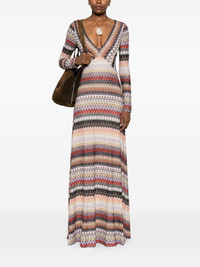 zigzag-woven dress Highlights - Multicoloured - Zigzag pattern - V-neck - Long sleeves - Floor-length - The item you receive may differ slightly from the item photographed. this is due to the artisanal nature with which all missoni products are constructed. Imported Composition Outer: Viscose 91%, Metallised Fibres 9% Lining: Polyester 82%, Elastane 18% SIZE & FIT Model measurements Height 5 ft 11 in(1.8 m) Bust/Chest 31.49 in(80 cm) Hips 36.61 in(93 cm) Waist 24.4 in(62 cm)