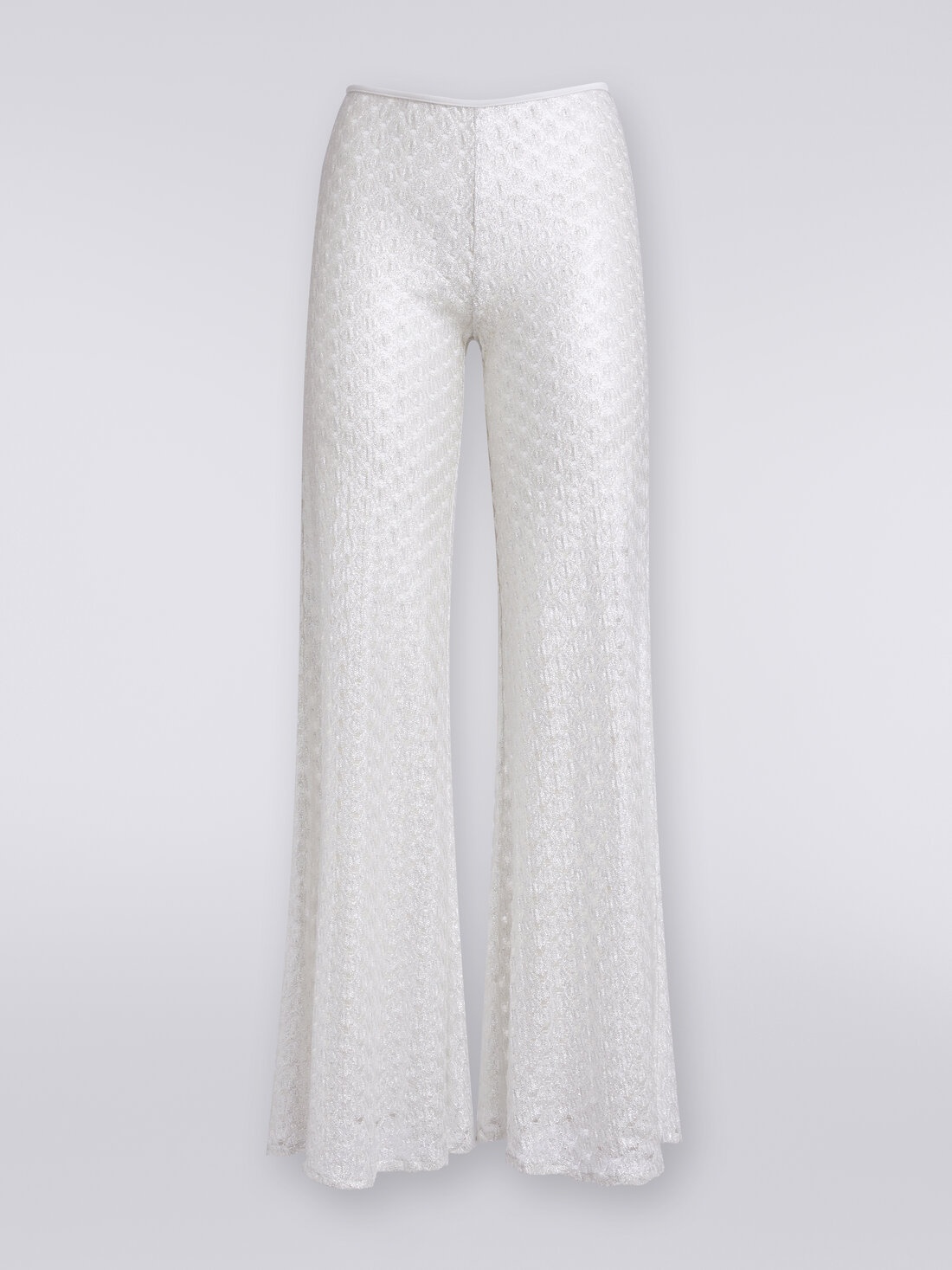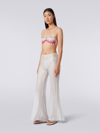 A mirrored surface, almost simulating the reflections of light on water, characterises the flare-cut women’s cover up trousers. The viscose knit with lace-effect technique lends sophistication to this Missoni beachwear staple. MORE DETAILS - Women’s cover up trousers - Viscose knit - Lace-effect technique - Flare cut Composition: EXTERNAL:100%Rayon Care instructions: Ironing maximum temperature 110°C - without steam; Dry cleaning in tetrachloroethene; Do not tumble dry; Do not wash; Do not bleach Made in: Italy Product ID MS24SI00BR00TC14001