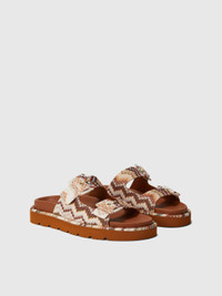 These sandals with a double strap and buckle combine the signature zigzag pattern with slightly shimmering finishes for a touch of sophisticated brightness. The open toe and leather insole ensure comfort, while the rubber sole provides stability and practicality. MORE DETAILS - Sandal - Double strap and buckle - Zig zag pattern - Leather insole - Rubber sole Made in: Italy Product ID LS25SY0BBV00HOS80DX