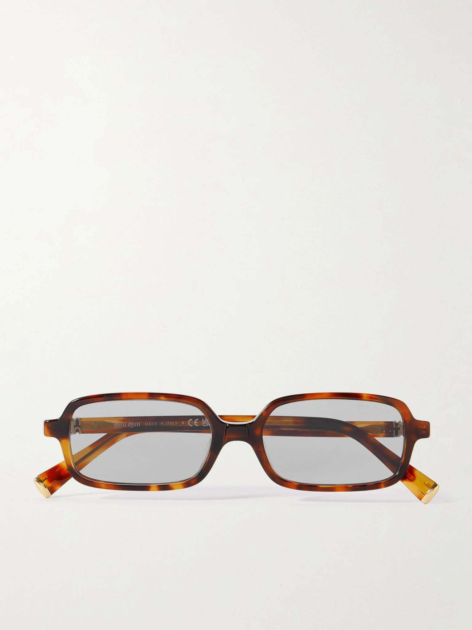 Miu Miu's sunglasses are fitted with lightly tinted lenses that give them a cool, retro feel. They're made from glossy tortoiseshell acetate for contrast and have rectangular frames and slim arms featuring the logo in gold-tone metal at the hinges. Details & Care - Tortoiseshell acetate - Come with a case - 100% UV protection