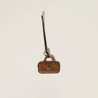Distinctive elements of the Miu Miu wardrobe transform into precious accessories for bags, allowing for playful and personal combinations. This leather trick, inspired by the iconic Arcadie, adds a unique touch to the bag's design. - Product code: 5TL356_2CWA_F0046 - With ring - With leather strap - Painted metal lettering logo - Imported Height 6.5cm Width 12cm Materials Main material: Lambskin
