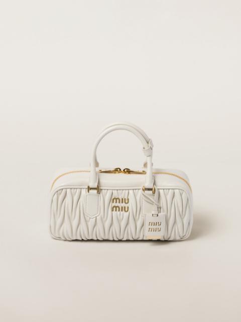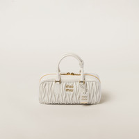 A luxurious matelasse motif reinterprets the classic silhouette of the top-handle bag through its three-dimensional, textured, and extremely sophisticated effect. The lettering logo on the front, which echoes the different metallic finishes, stands out against the refined artisan-crafted motif with an iconic and immediately recognizable touch. The dynamic and elegant lines and the detachable, adjustable shoulder strap contribute to the versatile, functional, and modern design of the bag. - Product code: 5BB148_N88_F0009_V_OOT - Matelasse motif - Leather handles - Detachable, adjustable 105 cm leather shoulder strap - Removable leather mirror case - Gold-tone hardware - Metal lettering logo on the front - Zipper closure - Cotton satin lining with zipper pocket - With purse feet - Imported Height 12cm Width 27cm Length 9cm Materials Main material: Lambskin