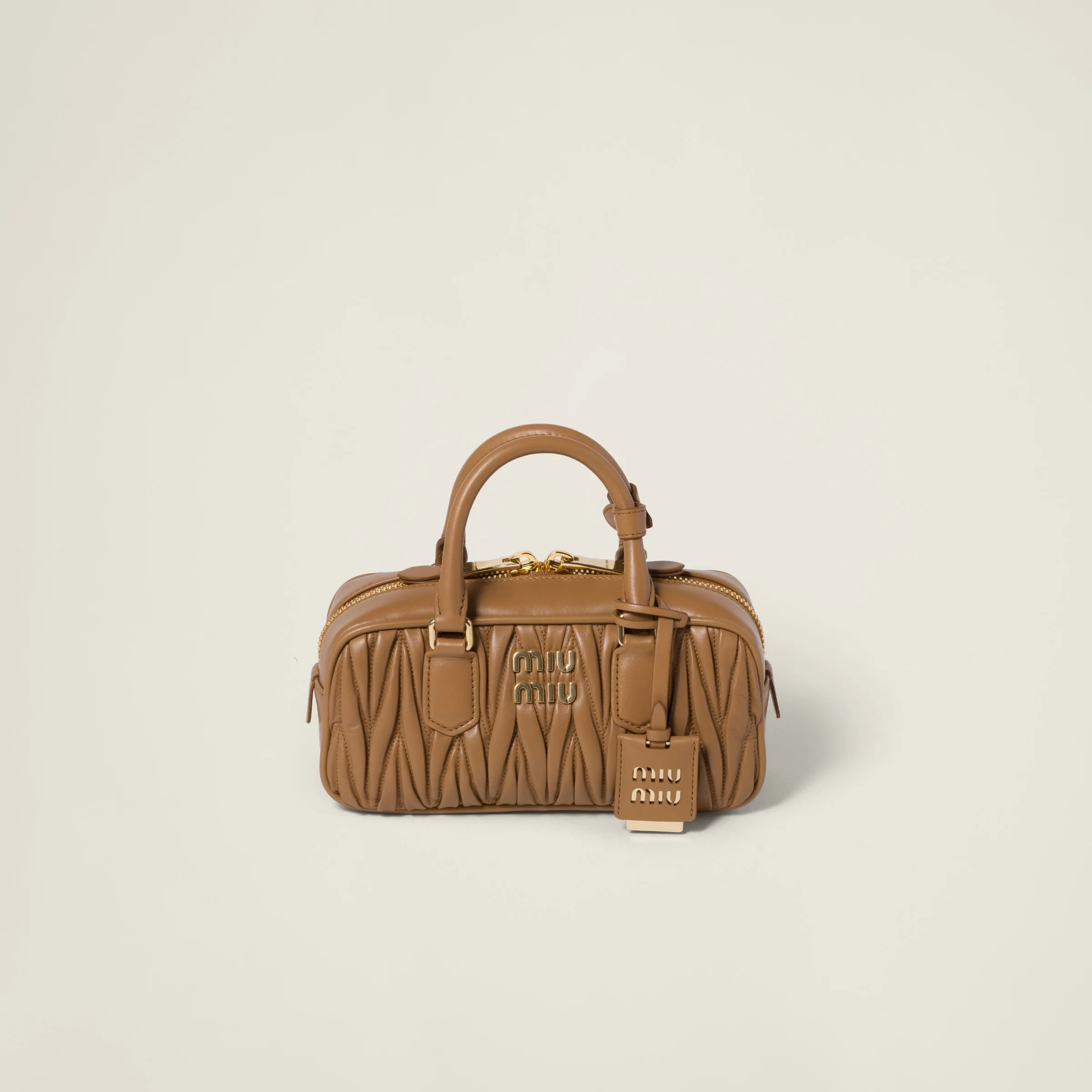 Precious matelasse workmanship revisits the classic silhouette of the top-handle bag thanks to its three-dimensional, textured, and extremely sophisticated effect. The lettering logo on the front that echoes different metallic finishes of the hardware stands out against the artisan motif with an iconic and immediately recognizable touch. The dynamic and elegant lines and the adjustable, detachable shoulder strap contribute to the versatile, functional and modern design of the bag. - Product code: 5BB142_AN88_F098L_V_OON - Matelasse workmanship - Leather handles - Detachable, adjustable 105 cm leather shoulder strap - Removable leather mirror case - Gold-tone hardware - Metal lettering logo on the front - Zipper closure - Cotton satin lining with zipper pocket - With purse feet - Imported Height 10.5cm Width 22cm Length 7.5cm Materials Main material: Lambskin