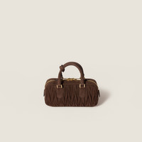The top-handle silhouette of the Arcadie bag is enriched by the soft touch of suede made unique by bold colors that enhance its versatile and refined iconic look. - Product code: 5BB142_AB7O_F0003_V_OON - Matelasse craftsmanship - Double suede handles - Detachable, adjustable suede shoulder strap Minimum length: 105 cm - Maximum length: 115 cm - Minimum drop: 53 cm - Maximum drop: 57 cm - Removable leather mirror holder - Gold-tone hardware - Zipper closure - With purse feet - Cotton satin interior with zipper pocket - Metal lettering logo on the front - Imported Height 10.5cm Width 22cm Length 7.5cm Materials Main material: Lambskin