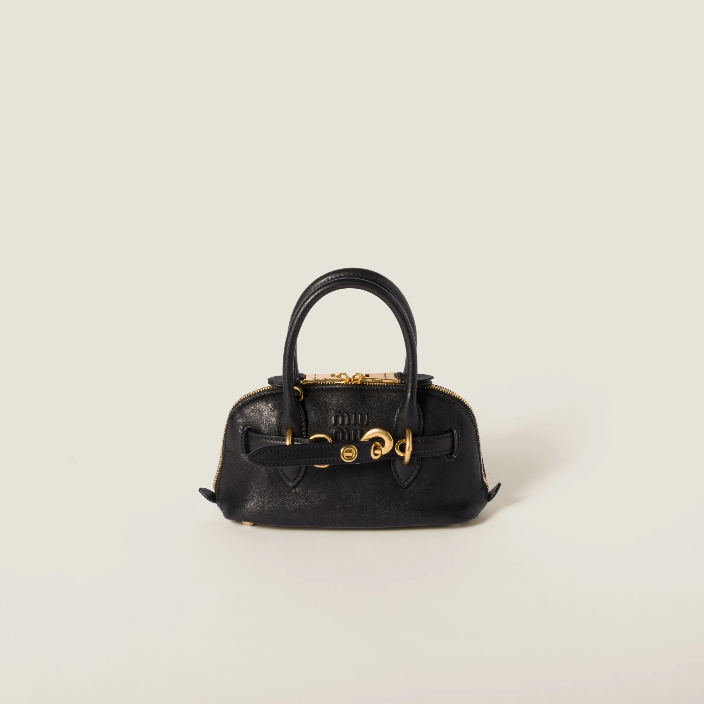 The Aventure mini nappa leather bag boasts a refined and elegant silhouette. This variant is enhanced by the original proportions and embossed logo that lends understated character to this timeless bag. - Product code: 5BP090_2BBL_F0002_V_OOO - Adjustable and removable leather shoulder strap. Maximum length 110 cm - Minimum length 100 cm - Maximum clearance 57 cm - Minimum clearance 53 cm - Antiqued gold-trim hardware - Embossed lettering logo on front - Zip closure - Linen interior with two patch pockets - With purse feet - Imported Height 13.2cm Width 21cm Length 8cm Materials Main material: Lambskin