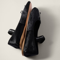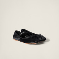 These soft and sophisticated velvet ballerinas celebrate vintage experimentation. The bow and the elastic band with logo are the distinctive details of this icon of Miu Miu style. - Product code: 5F794D_849_F0002_F_DX05 - Upper with bow and logo-decorated elastic strap - Leather-covered insole - Screen-printed logo on the insole - Imported Materials Main material: Cupro Viscose