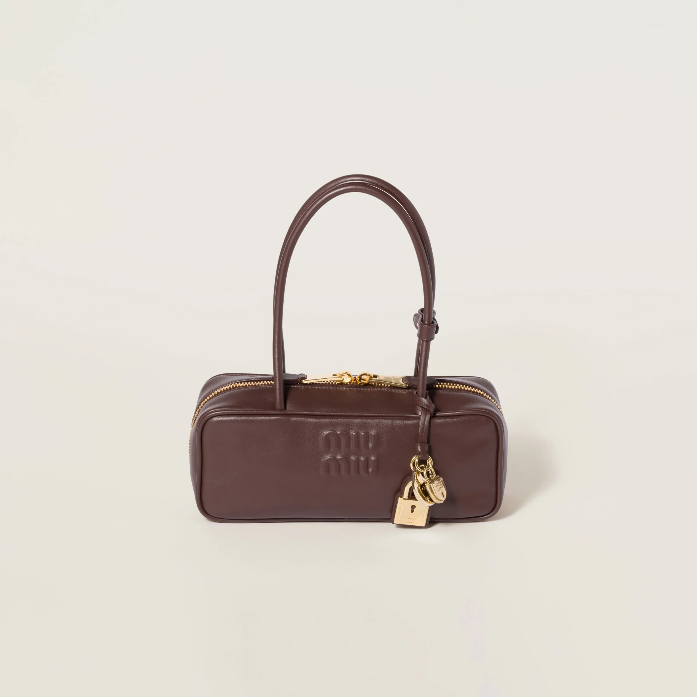 The Beau bag combines retro inspiration and a contemporary spirit. The distinctive top-handle silhouette and trick detail enhance its functionality and character. - Product code: 5BB173_2CRW_F0NBL_V_OTM - Leather handles - Removable trick - Gold-tone hardware - Zipper closure - Cotton satin lining with zipper pocket - Embossed lettering logo on the front - Imported Height 11.5cm Width 28cm Length 8cm