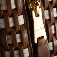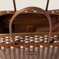 The iconic top-handle shape of the Beau bag expresses elegance and functionality. The colorful woven pattern characterizes this version in soft leather embellished with the lettering logo on the front and the special trick that adds a touch of personality and style. - Product code: 5BB172_2IBL_F031W_V_OIH - Woven craftsmanship - Leather handles - Removable trick - Gold-tone hardware - Zipper closure - Cotton gabardine lining with double zipper pocket - Leather lettering logo on the front - Imported Height 17cm Width 30cm Length 8.5cm Materials Main material: Calfskin