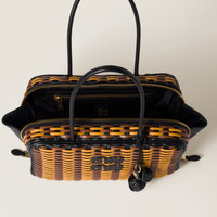 The iconic top-handle shape of the Beau bag expresses elegance and functionality. The colorful woven pattern characterizes this version in soft leather embellished with the lettering logo on the front and the special trick that adds a touch of personality and style. - Product code: 5BB172_2IBL_F04HA_V_OIH - Woven craftsmanship - Leather handles - Removable trick - Gold-tone hardware - Zipper closure - Cotton gabardine lining with double zipper pocket - Leather lettering logo on the front - Imported Height 17cm Width 30cm Length 8.5cm Materials Main material: Calfskin