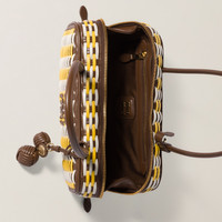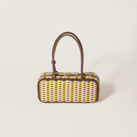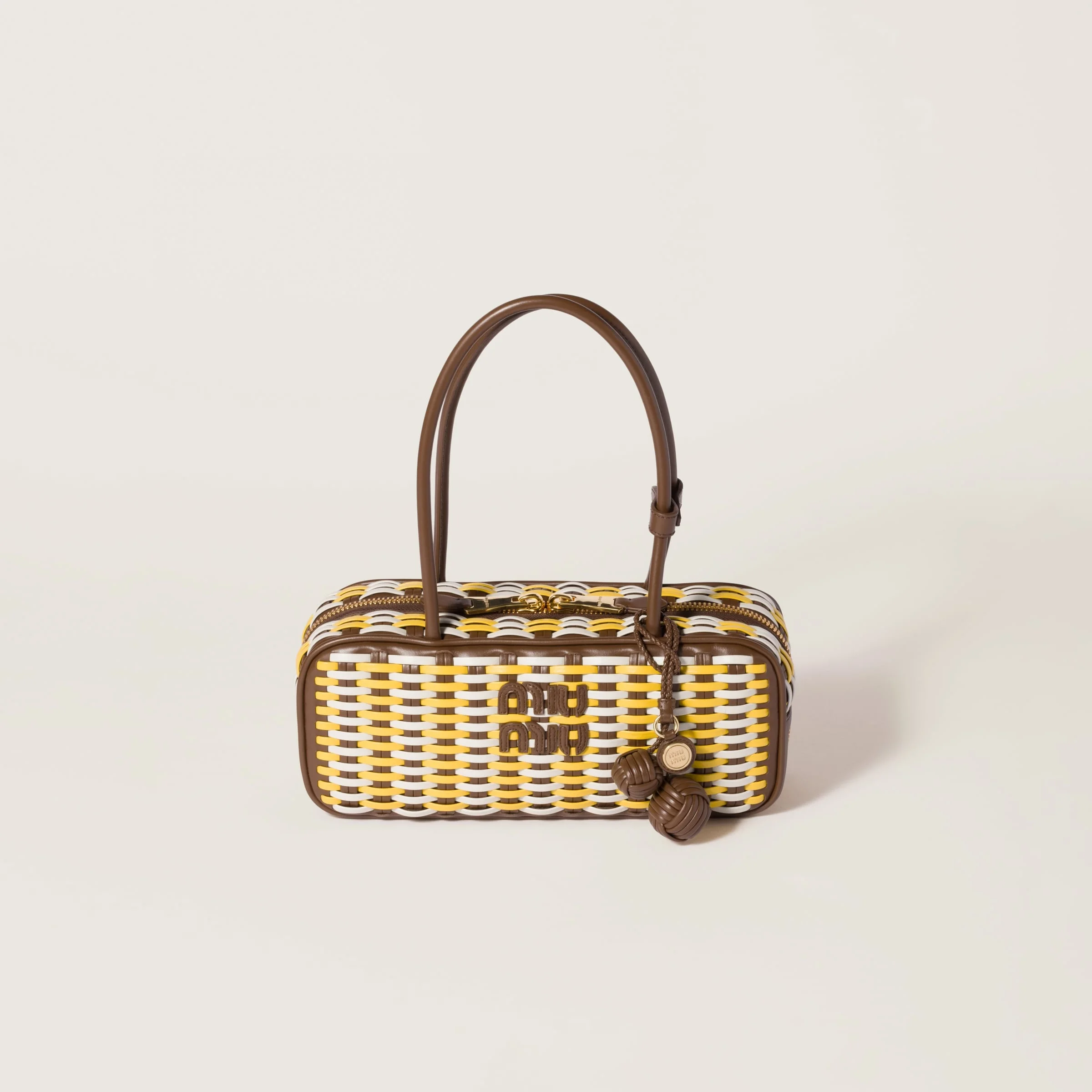The iconic top-handle shape of the Beau bag expresses elegance and functionality. The colorful woven pattern characterizes this version in soft leather embellished with the lettering logo on the front and the special trick that adds a touch of personality and style. - Product code: 5BB173_2IBL_F04HB_V_OIM - Woven craftsmanship - Leather handles - Removable trick - Gold-tone hardware - Zipper closure - Cotton gabardine lining with double zipper pocket - Leather lettering logo on the front - Imported Height 11.5cm Width 28cm Length 8cm Materials Main material: Calfskin