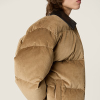 The unique corduroy texture highlights the striped design of this down jacket, adding sophistication and versatility to the silhouette’s volume. The nappa leather collar and tone-on-tone embroidered logo accentuate its iconic style. - Product code: ML1321_179R_F0594_S_OOO - Goose down padding - Leather collar - Elastic cuffs - Zip closure - Welt pockets with zip - Elastic drawstring at hem - Embroidered logo - Imported - The model is 177 cm tall and wears a size 38 Materials Main material: 100% Cotton