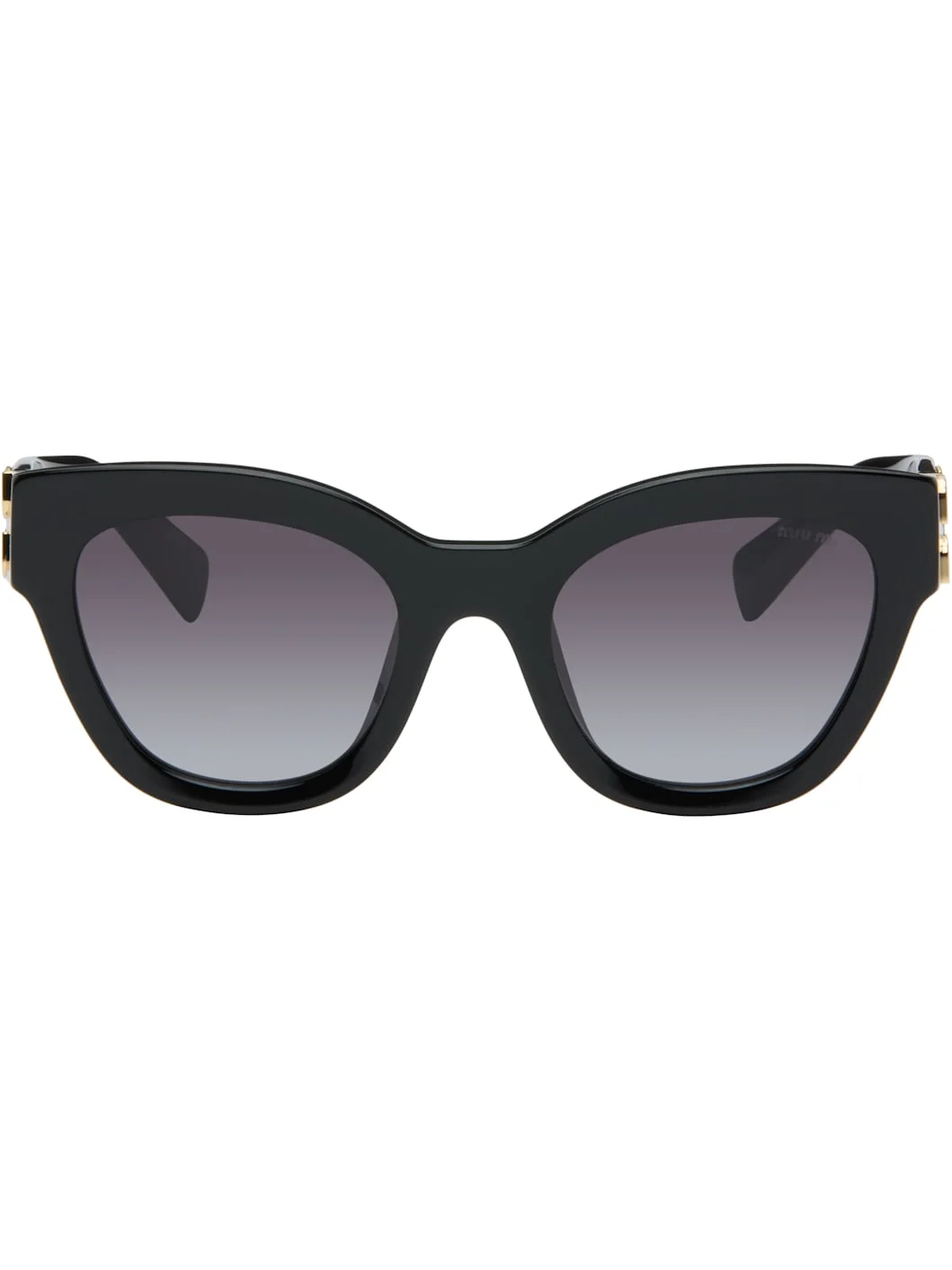 Cat-eye acetate-frame sunglasses. · Gray gradient lenses · 100% UVA/UVB protection, category 3 · Logo etched at lens · Integrated nose pads · Logo hardware at temples · Gold-tone hardware · Includes case · Size: 51.22 135 Supplier color: Black/Grey gradient Acetate. Made in Italy 261209F005065
