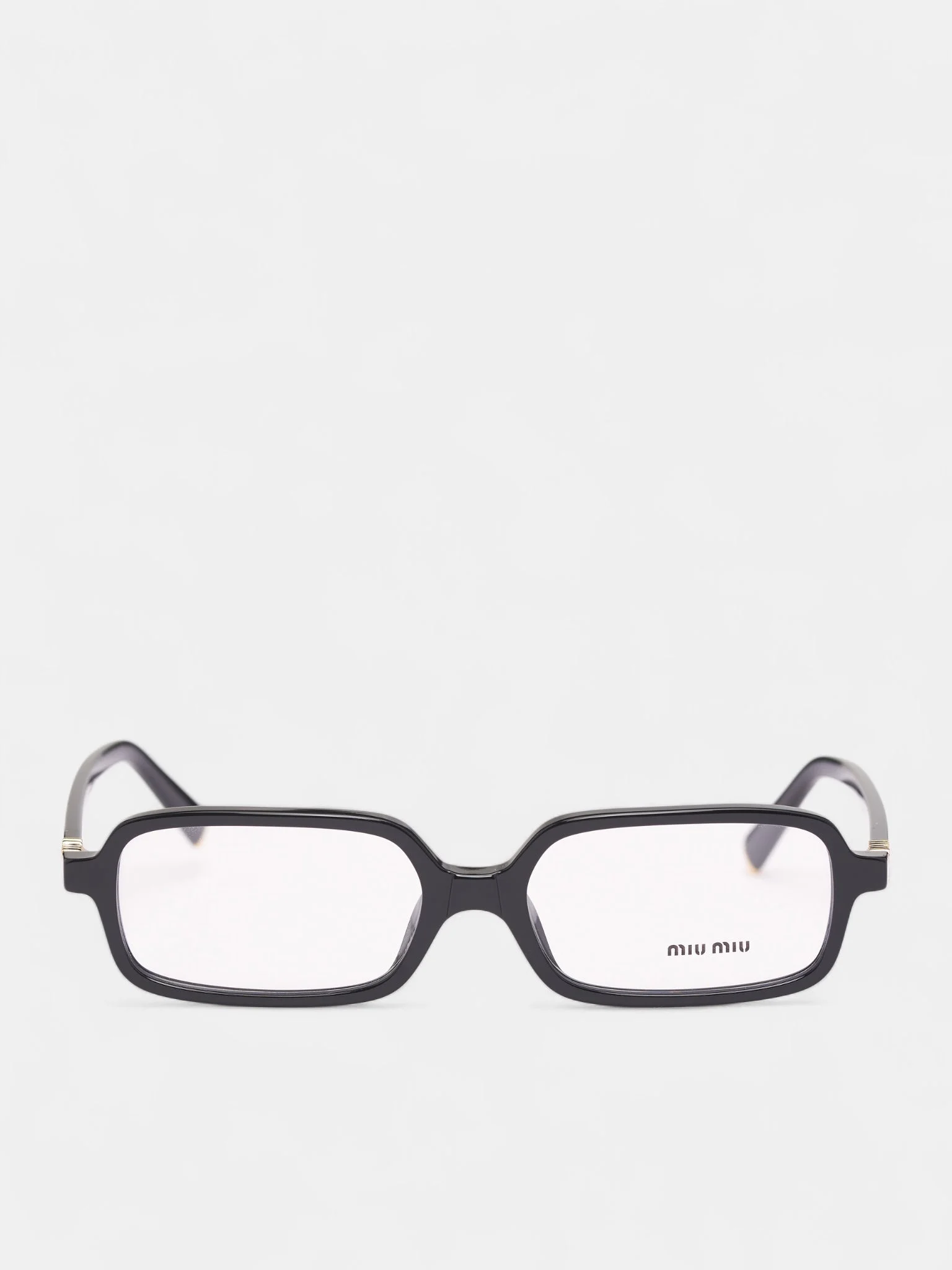 Featuring: • Rectangular frame design • Glossy acetate construction • Gold-tone logo detailing at temples • Gold-tone temple tips • Clear frames • Fixed nose pads • Case included • 100% Acetate • One size