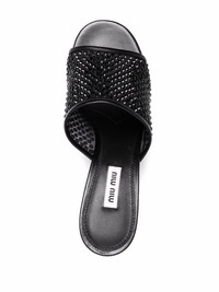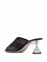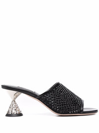 crystal-embellished leather sandals black leather crystal embellishment silver-tone hardware open toe slip-on style low cone heel branded insole leather sole Composition Lining: Fabric 100%, Calf Leather 100% Outer: Crystal 60%, Nylon 40% Sole: Calf Leather 100% SIZE & FIT Measurement HEEL 2.95 in(7.5 cm) Sole height 0.39 in(1 cm)