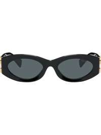 Oval acetate-frame sunglasses. · Gray lenses · 100% UVA/UVB protection, category 3 · Logo etched at lens · Integrated nose pads · Logo hardware at temples · Gold-tone hardware · Includes case · Size: 54.21 145 Supplier color: Black/Slate gray lenses Acetate. Made in Italy 261209F005052