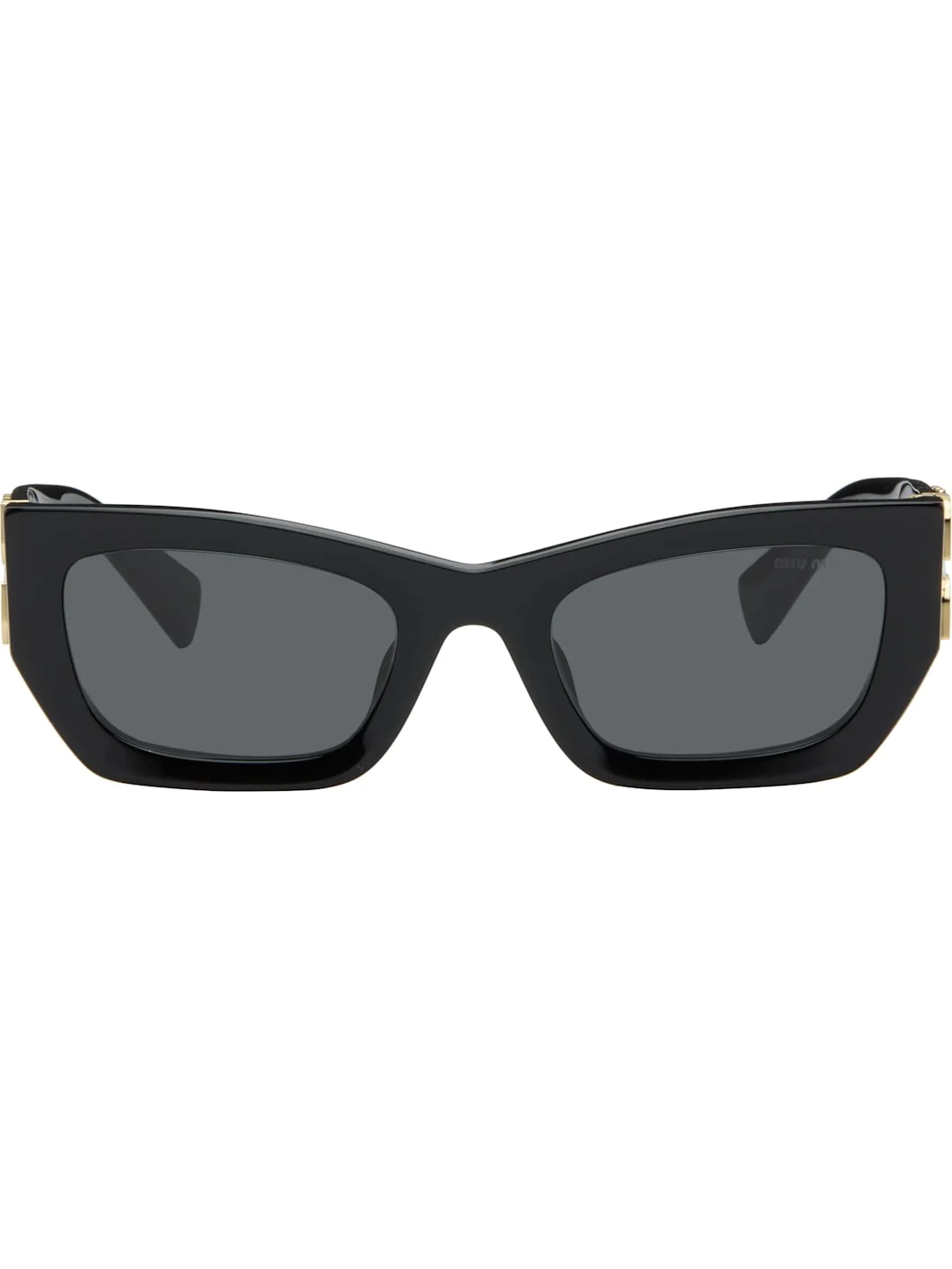 Rectangular acetate-frame sunglasses. · Gray lenses · 100% UVA/UVB protection, category 3 · Logo etched at lens · Integrated nose pads · Logo hardware at temples · Gold-tone hardware · Includes case · Size: 53.22 135 Supplier color: Black/Slate gray lenses Acetate. Made in Italy 261209F005056