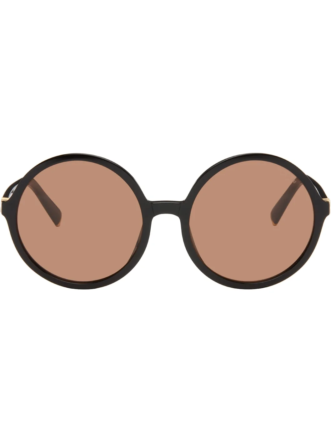 Round acetate-frame sunglasses. · Brown lenses · 100% UVA/UVB protection · Integrated nose pads · Logo hardware at temples · Includes case · Size: 59.20 140 Supplier color: Black Acetate. Made in Italy 261209F005019
