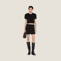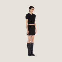 Miu Miu infuses new freshness in reinterpretations of timeless, universal garments. Combining daywear and formal attire, the aesthetic language of daytime apparel and classic tailored garments, Miu Miu plays with traditional materials and designs to create irreverent silhouettes. - Product code: MMG413_12KD_F0002_S_231 - Punto Stoffa knit - A-line - Ribbed knit hem - Embroidered logo - Front pockets - Imported - The model is 178 cm tall and wears a size 38 - Height: 70cm