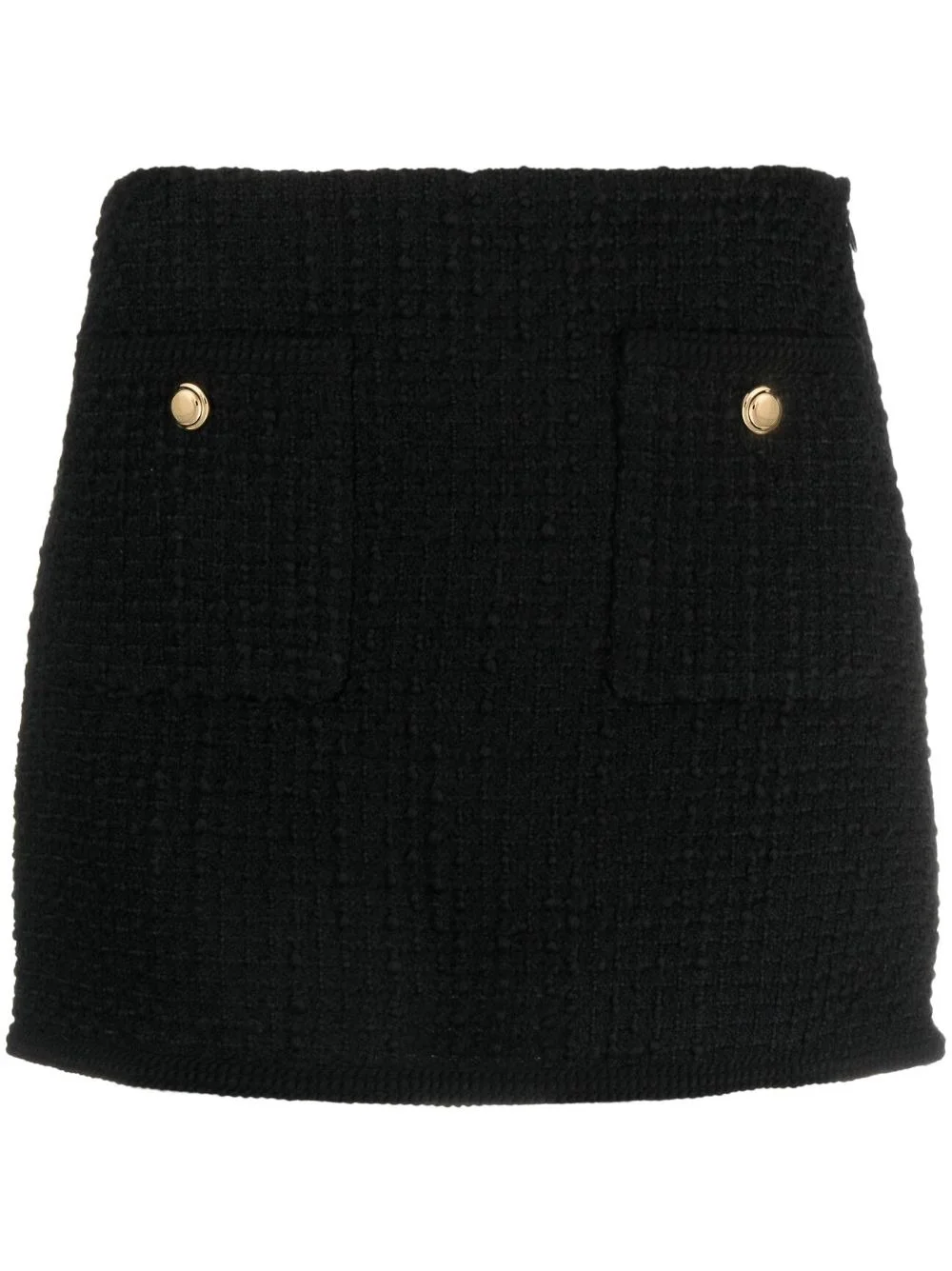 button-detail boucle miniskirt Highlights - Black - Virgin wool blend - Boucle construction - Mid-rise - Concealed side zip fastening - Two lined front patch pockets - Polished gold-tone buttons - Rear knit logo tag - Straight hem - Thigh-length - Tubular hem - Silk full lining Composition Lining: Silk 100% Outer: Virgin Wool 93%, Polyamide 7% SIZE & FIT Model measurements Height 5 ft 11 in(1.8 m) Bust/Chest 31.49 in(80 cm) Hips 36.61 in(93 cm) Waist 24.4 in(62 cm)