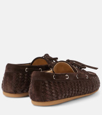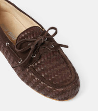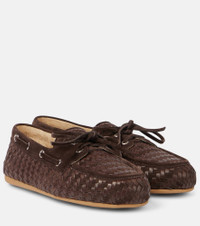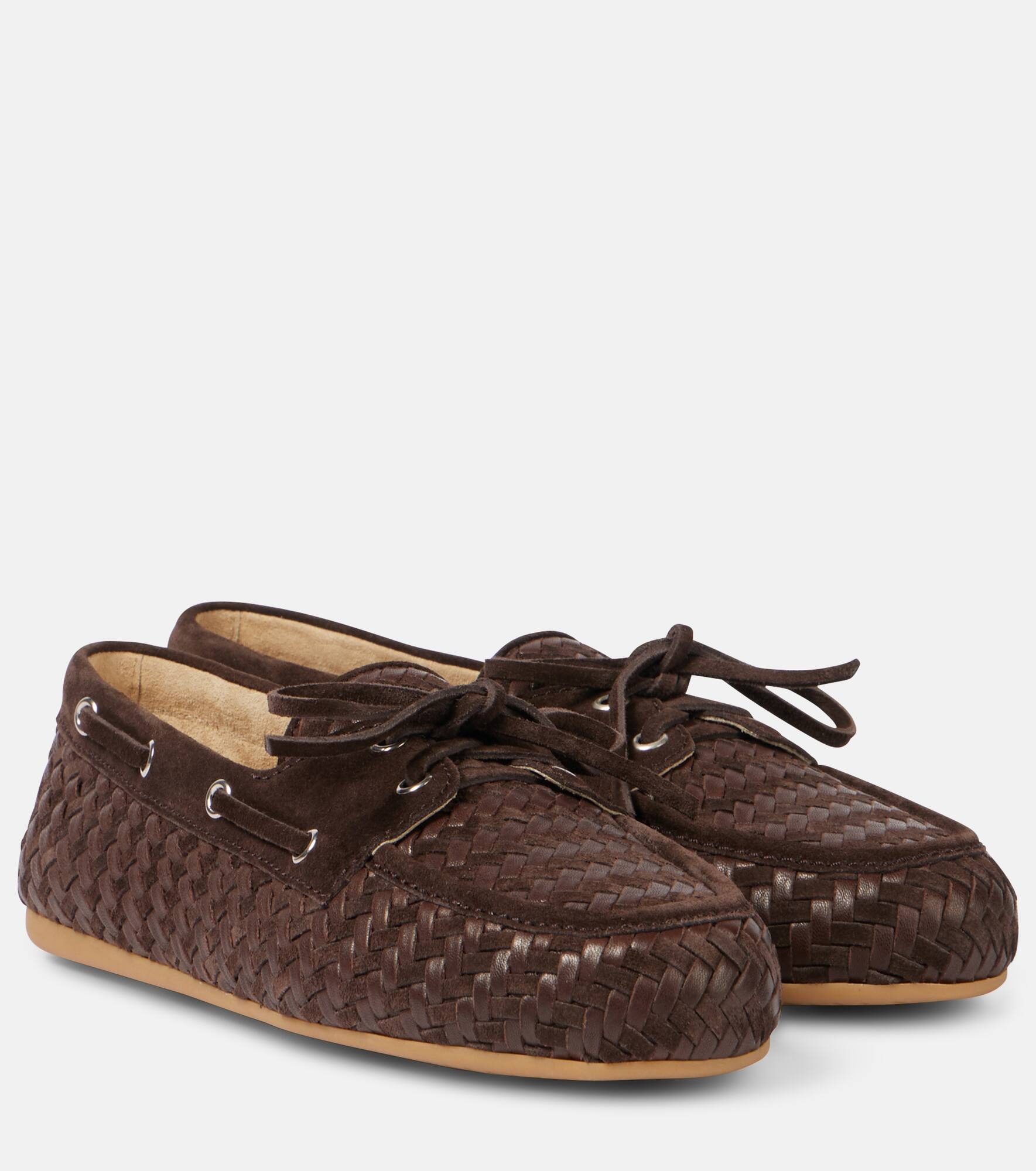 Woven leather and suede boat shoes
