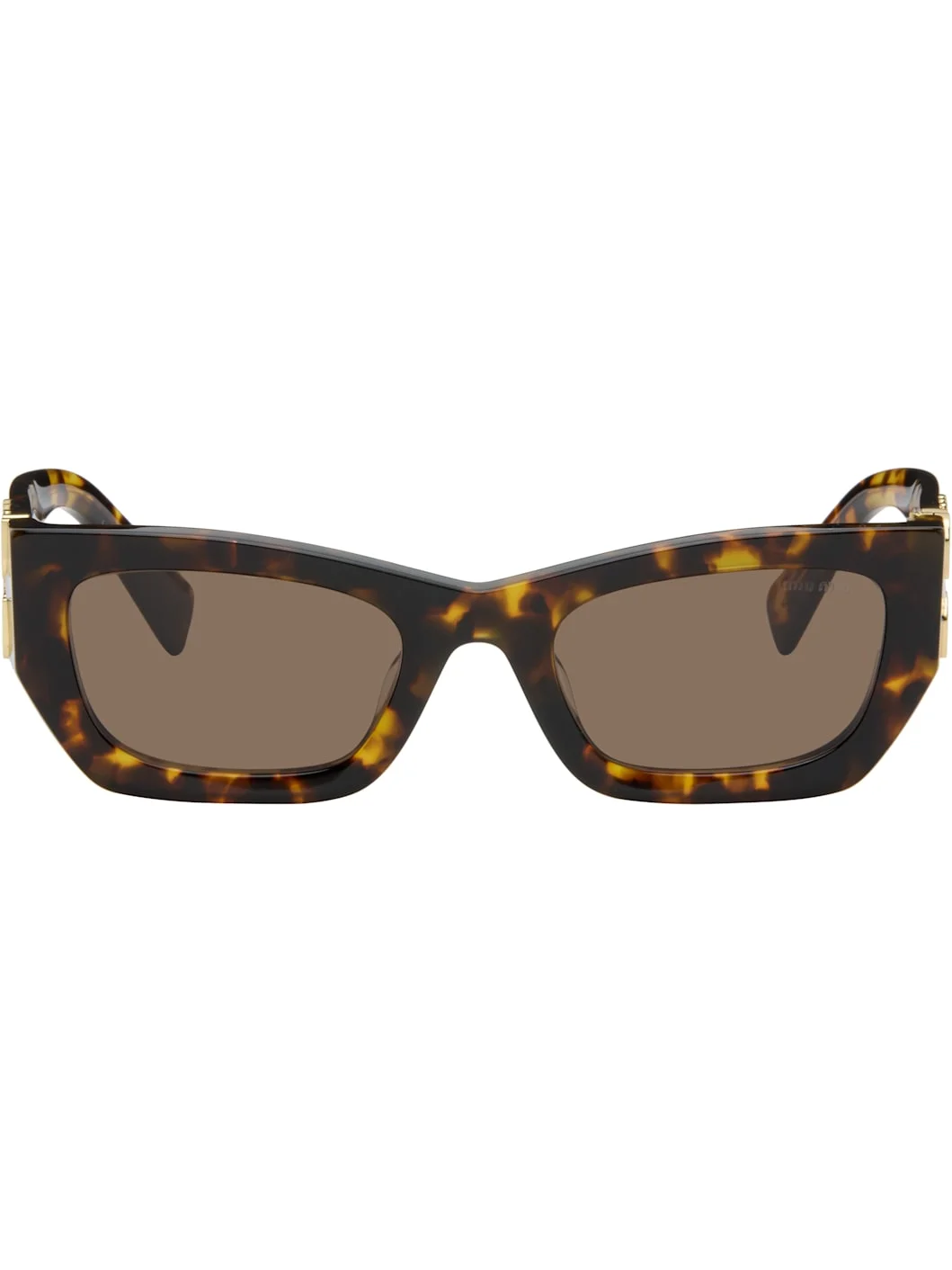 Rectangular tortoiseshell acetate-frame sunglasses. · Brown lenses · 100% UVA/UVB protection, category 2 · Logo etched at lens · Integrated nose pads · Logo hardware at temples · Exposed core wires · Gold-tone hardware · Includes case · Size: 53.22 135 Supplier color: Honey tortoiseshell/Coffee lenses Acetate. Made in Italy 261209F005055
