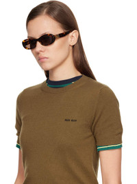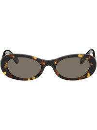 Oval tortoiseshell acetate-frame sunglasses. · Brown lenses · Etched logo at lens · Integrated nose pads · Logo hardware at hinges · Core wire at temples · Hinged velour case included · Size: 50.20 140 Supplier color: Havana Acetate. Made in Italy 261209F005067