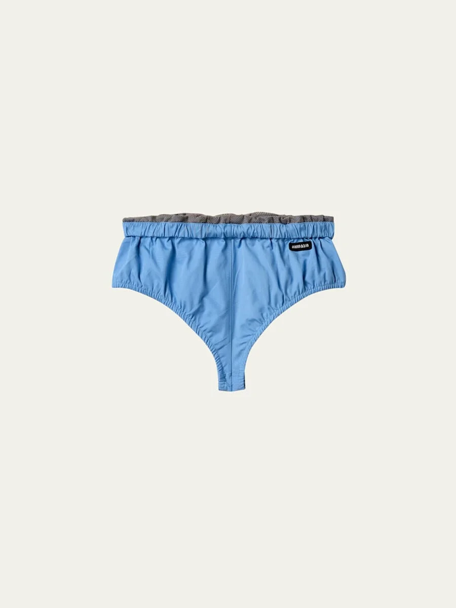 Miu Miu poplin briefs are crafted in crisp cotton poplin with a layered-effect waistband and a cheeky cut, offering structure with a hint of playfulness. Hipster waist height Logo patch on hip Bikini fit Cheeky seat coverage Pull-on style Cotton Made in Italy Online Inquiries: BGS21_I2N93| Store Inquiries: #4993590