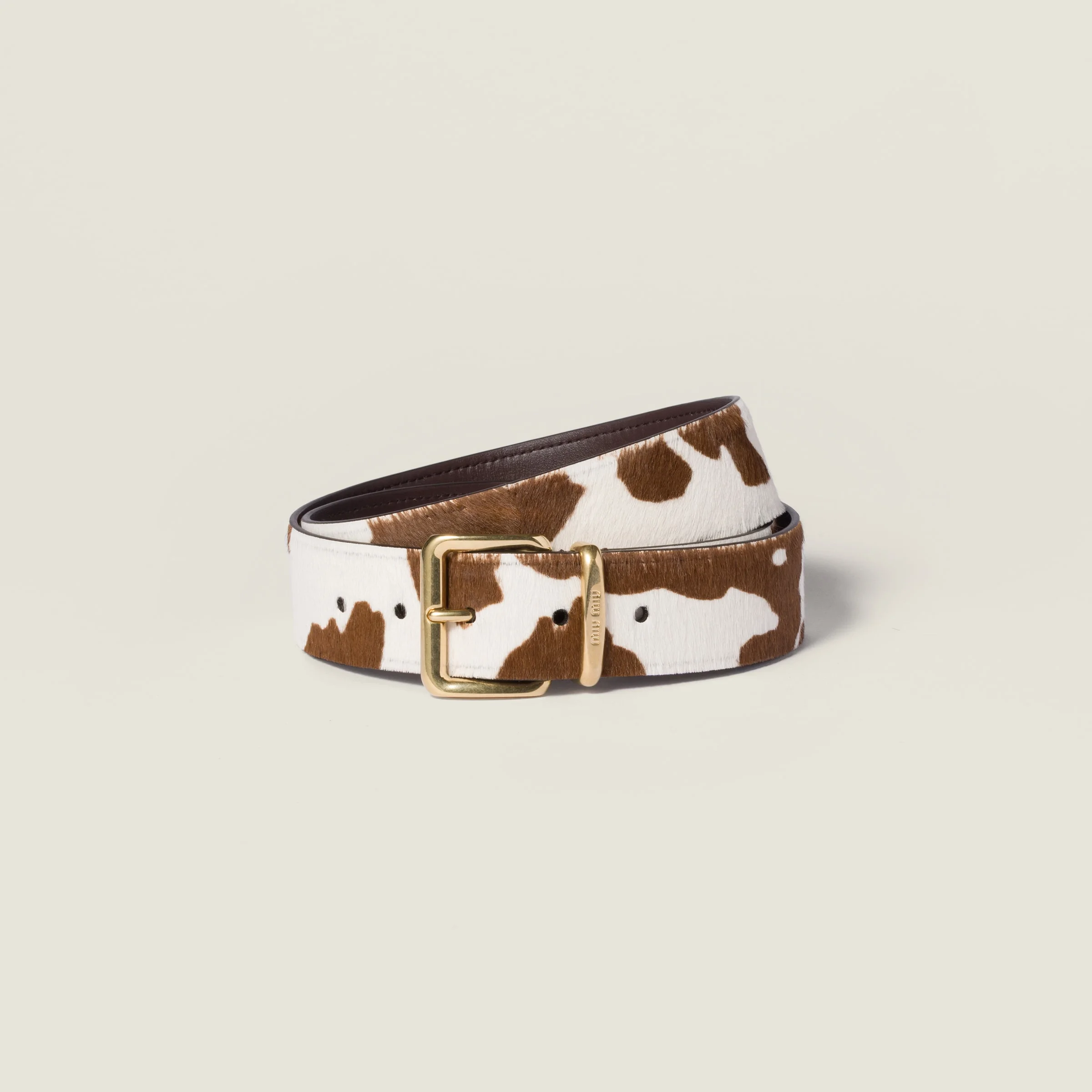 The simple design of this belt comes to life thanks to the strong character of calf hair with a bold cow print for an accessory that adds a distinctive and unexpected touch to looks. - Product code: 5CC536_2ICT_F0EDH - Metal buckle - Lasered logo on the belt loop - Imported Height 3.5cm Materials Main material: Calfskin