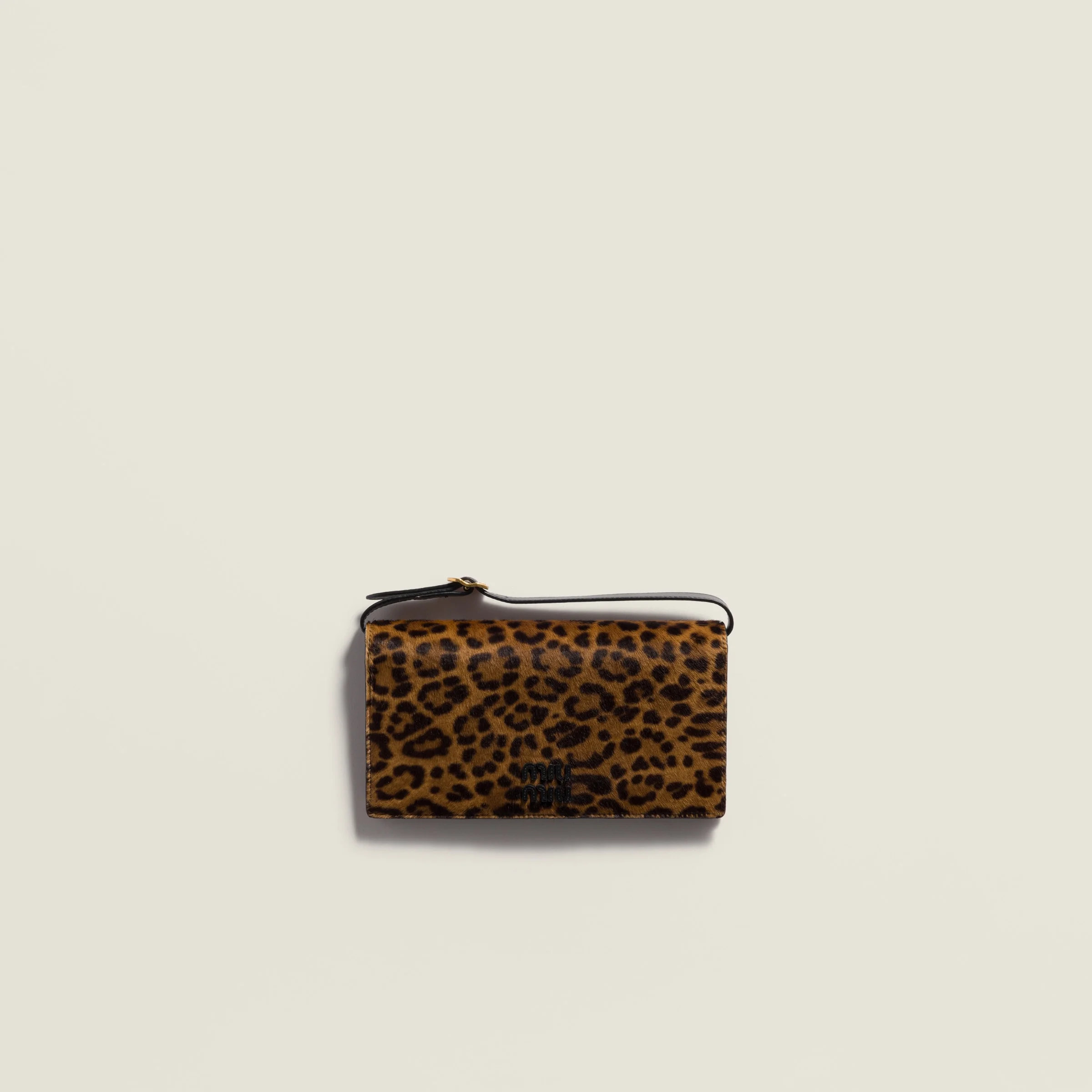 This wallet combines functional lines and sophisticated details such as the strap with buckle that allows it to be worn as a clutch bag. The leopard print on calf leather interprets bold, experimental femininity. - Product code: 5MT029_2IFT_F0151 - Nine card slots - Two internal pockets, including one with zipper - Moire lining - Flap closure with snap - Detachable, adjustable leather strap - Leather lettering logo - Imported Height 11.5cm Width 21cm Materials Main material: Calfskin