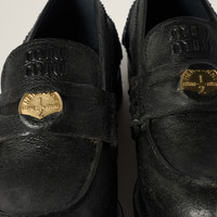 Timeless elegance and versatility characterize this calf leather loafer. The vintage effect of the leather and the penny detail symbolize the rebellious, vintage essence of this Miu Miu icon. - Product code: 5D773D_2KJ_F0002_F_020 - Apron with leather band and logo-engraved coin - Heel height 20 mm - Leather lining - Rubber sole - Leather insole - Embossed logo on tongue - Imported Materials Main material: Calfskin
