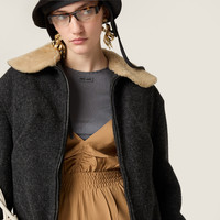 This silhouette reveals the body and plays with distinctive styling elements. This dress enriched by the fluid elegance of sable features simple shoulder straps and details that define the waistline, interpreting Miu Miu's dialogue with authentic, ever-evolving femininity. - Product code: MF6048_16Z1_F0040_S_OOO - Fit and flare - Wide neckline with shoulder straps - Three-quarter sleeves - Knit logo label - Imported - The model is 178 cm tall and wears a size 38 Height 100cm Materials Main material: 74% Acetate 26% Viscose