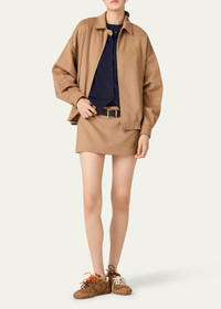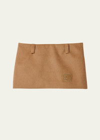 The refined texture of camel-hair fabric characterizes this miniskirt. The Miu Miu logo completes the garment with an iconic note. - Product code: MG2149_165_F0040_S_OOO - Mini silhouette - Lined garment - Side zipper closure with hook - Embroidered logo - Imported - The model is 180 cm tall and wears a size 38 Height 27cm Materials Main material: 100% Camel