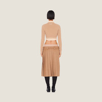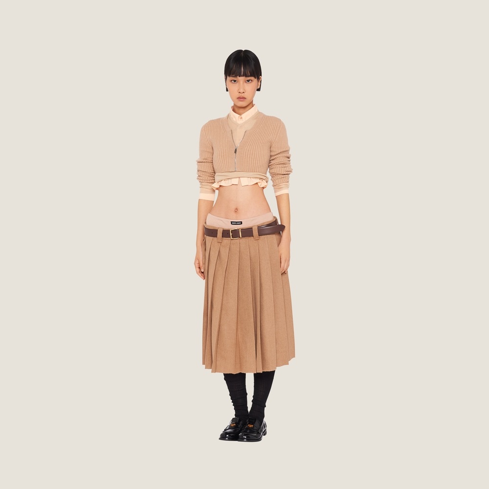 Classic styles are reinterpreted through proportions and precious details in the new Miu Miu collection. Iconic fabrics from the classic sartorial world meet innovation in this collection that is a reaction and a reflection of reality. - Product code: MG1781_165_F0040 - Pleats - Unlined garment - Side zipper closure - Embroidered logo - Height: 64cm - Imported